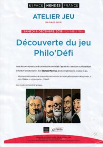 Autour des rencontres philosophiques de Langres . 15 édition ce week-end sur le thème de la violence. Philodéfi y est présent pour la 5ème année consécutive à travers un stand pour présenter le jeu philodéfi Lire la suite…